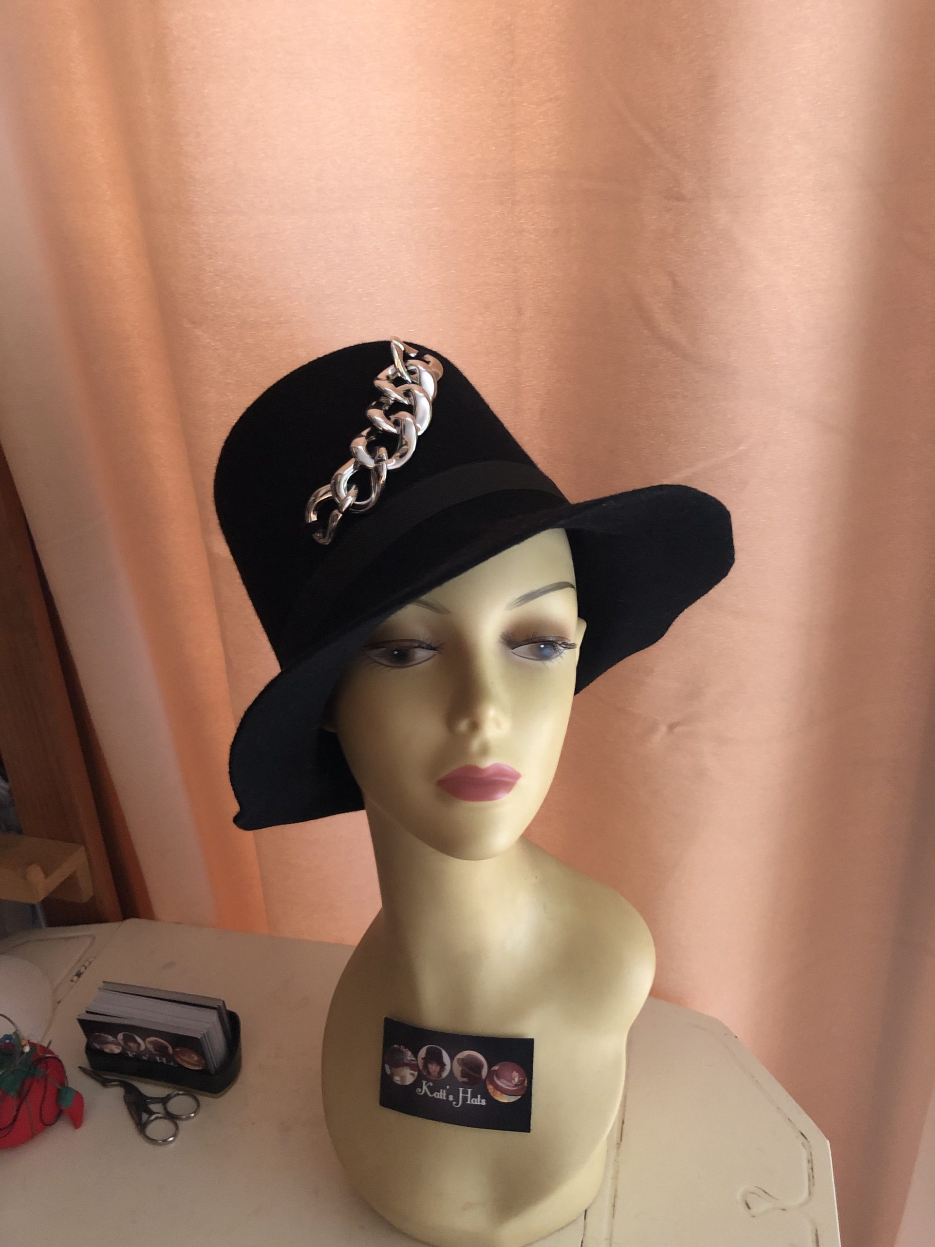 Black felt bell with silver ornament. Size S / M $ $ 250